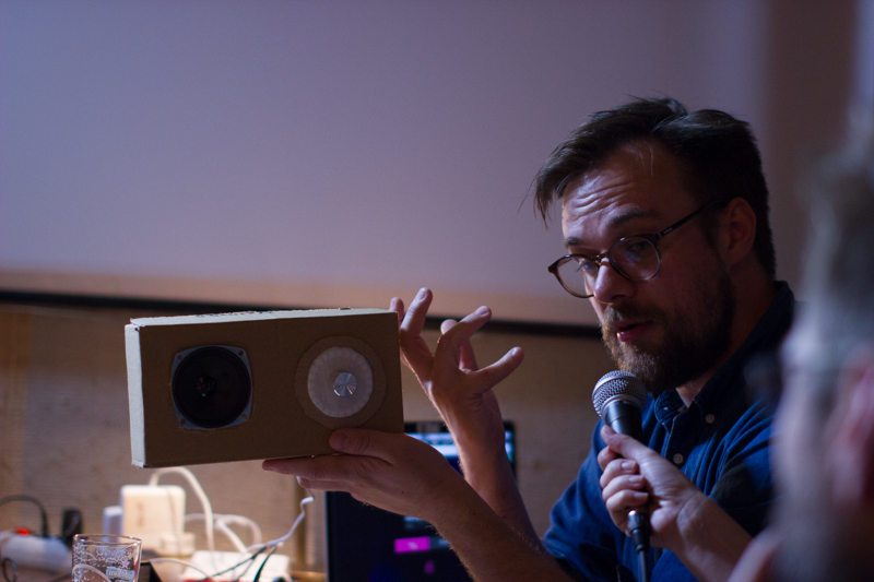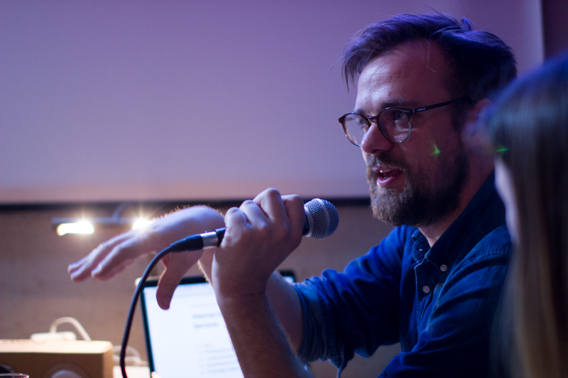 El Tim, que es dedica en concret a investigar interfícies web, ens va mostrar maneres noves en què els usuaris interactuen no tan sols amb els continguts d’àudio i de vídeo ( i inclús entre ells mateixos) a través d’una sèrie de prototips fets amb tecnologies pròpies del món maker.